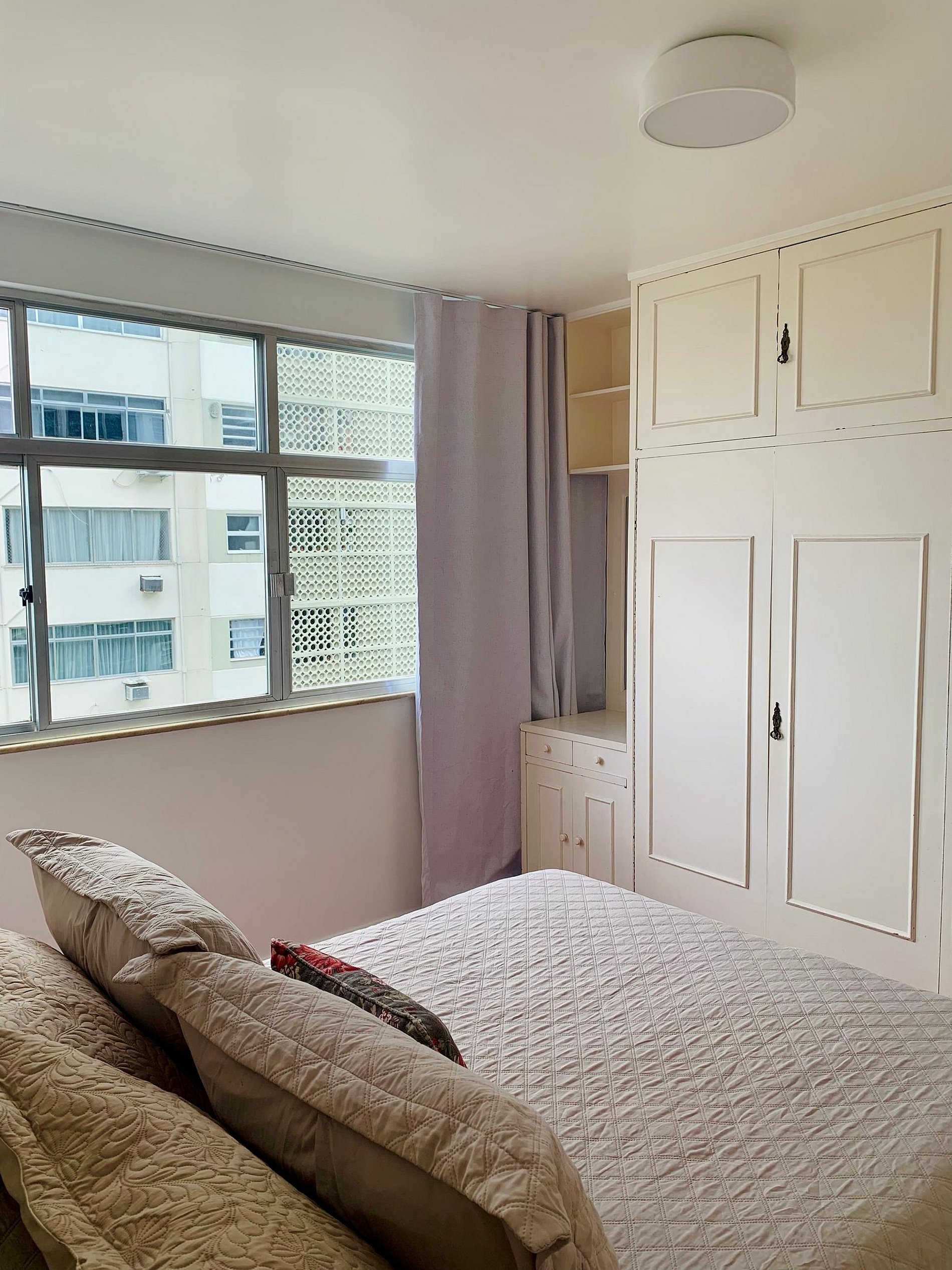 O apartamento foi reformado recentemente e fica entre o Leblon e Ipanema, duas das melhores áreas do Rio. Tem vista livre e está perto da Lagoa, do Shopping Leblon, das praias, restaurantes e bares. É ideal para quem busca conforto, boa localização e uma experiência autêntica na cidade.