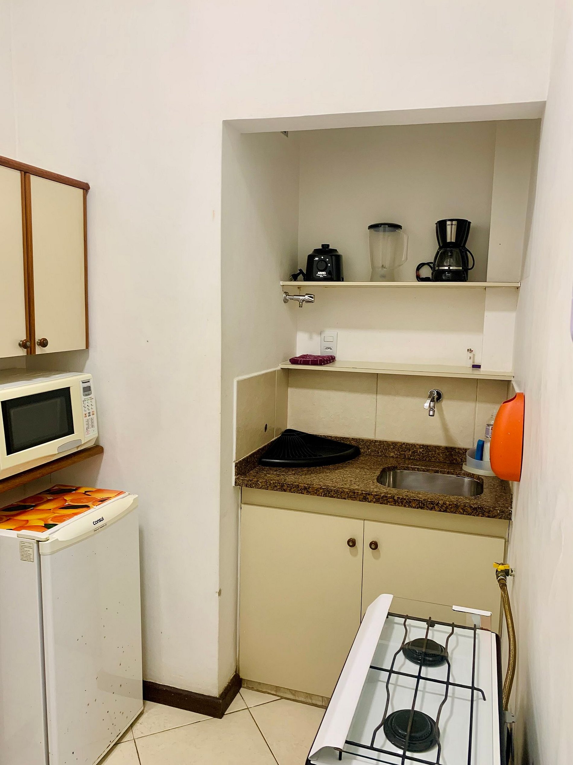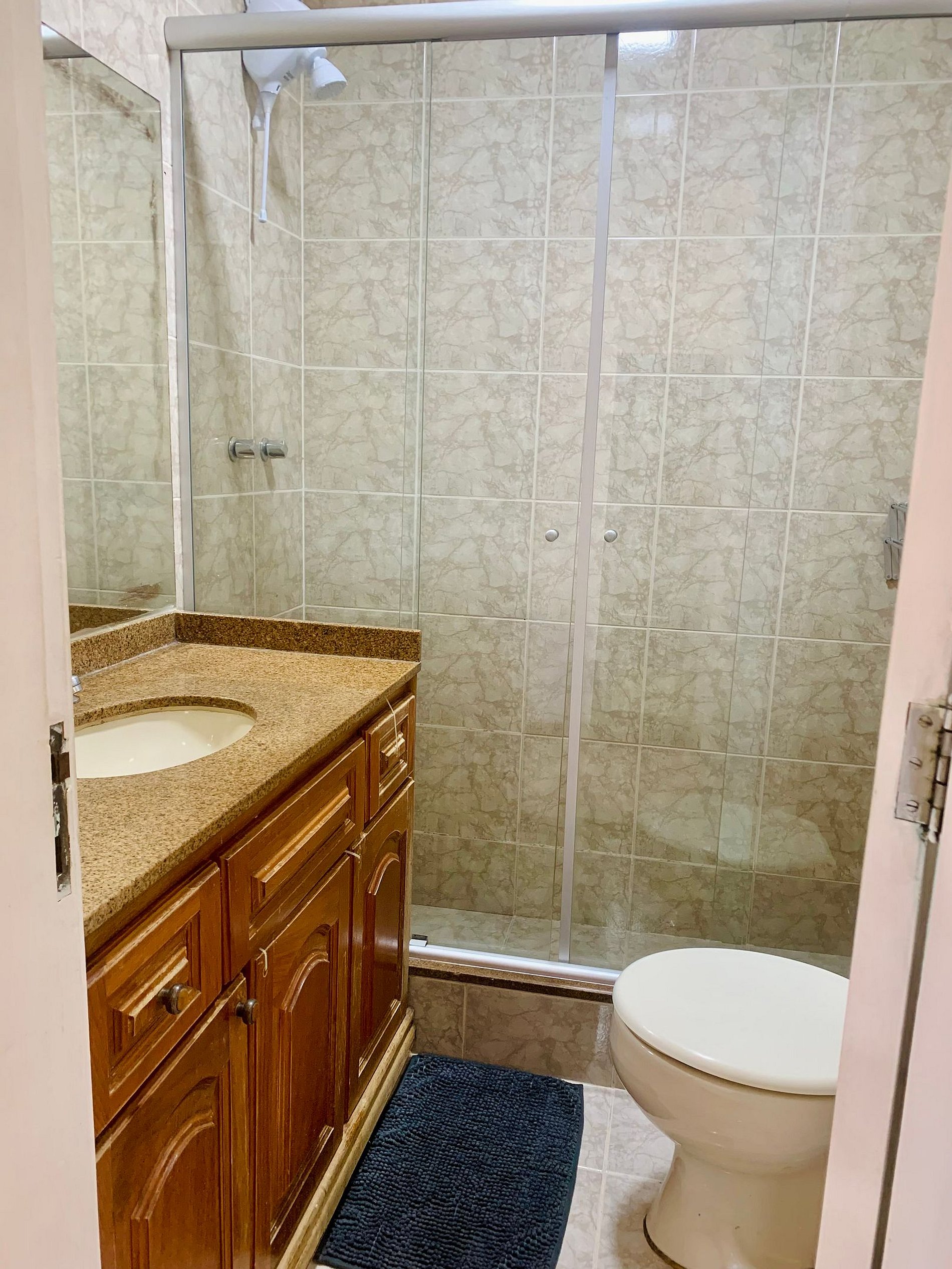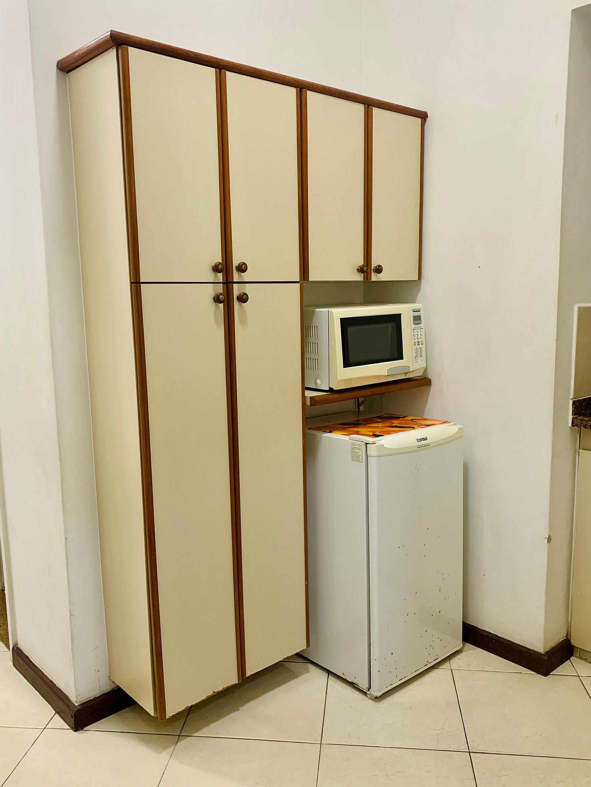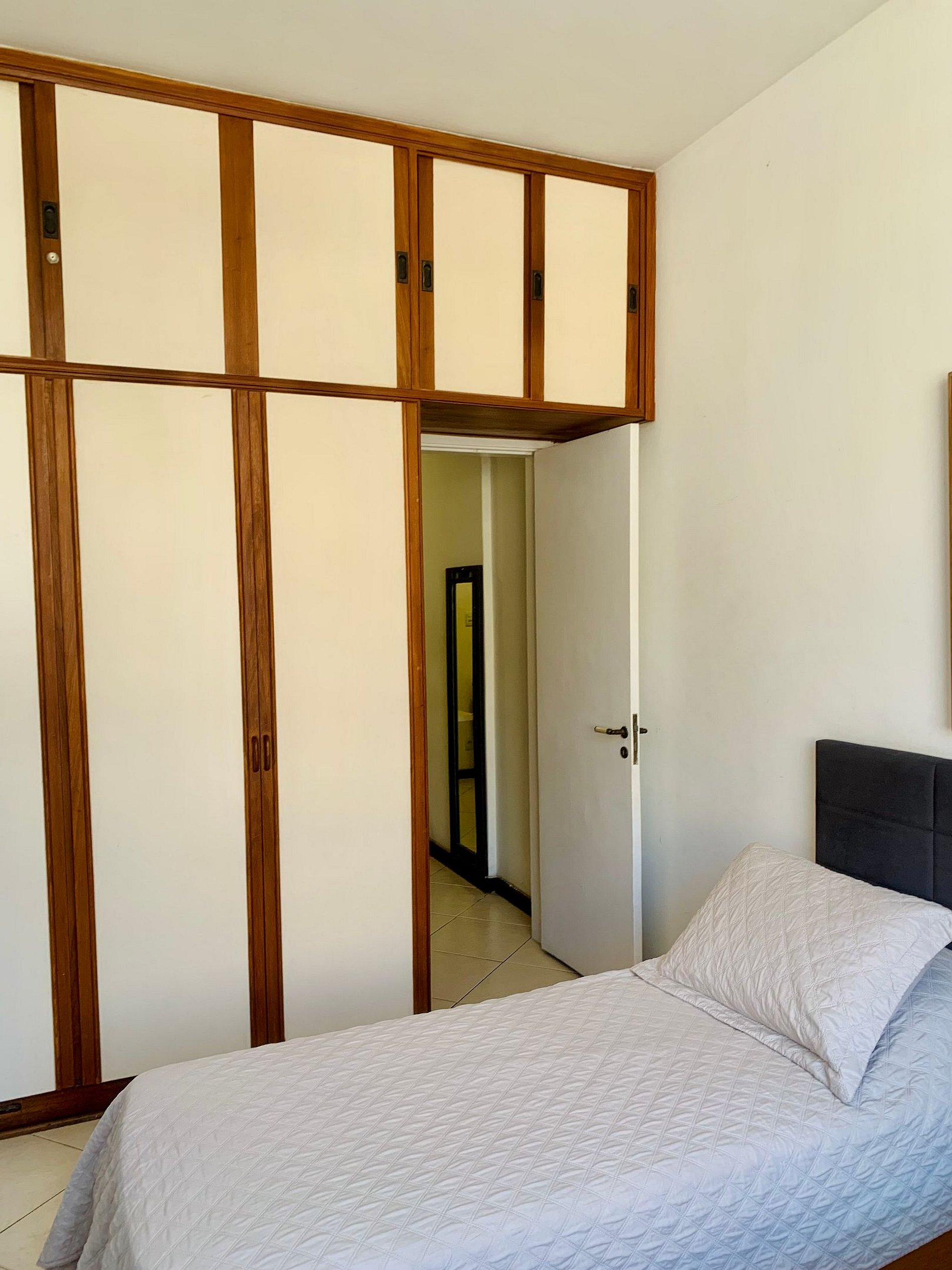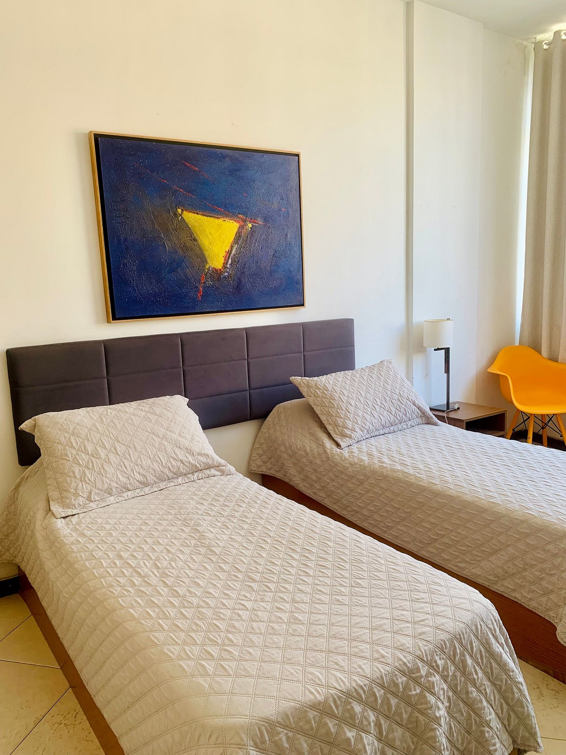 Apartamento recém reformado, amplo e arejado, piso em cerâmica, com duas camas box de solteiro e um sofá cama para 1 pessoa. As camas podem ser unidas formando uma cama casal tamanho queen.